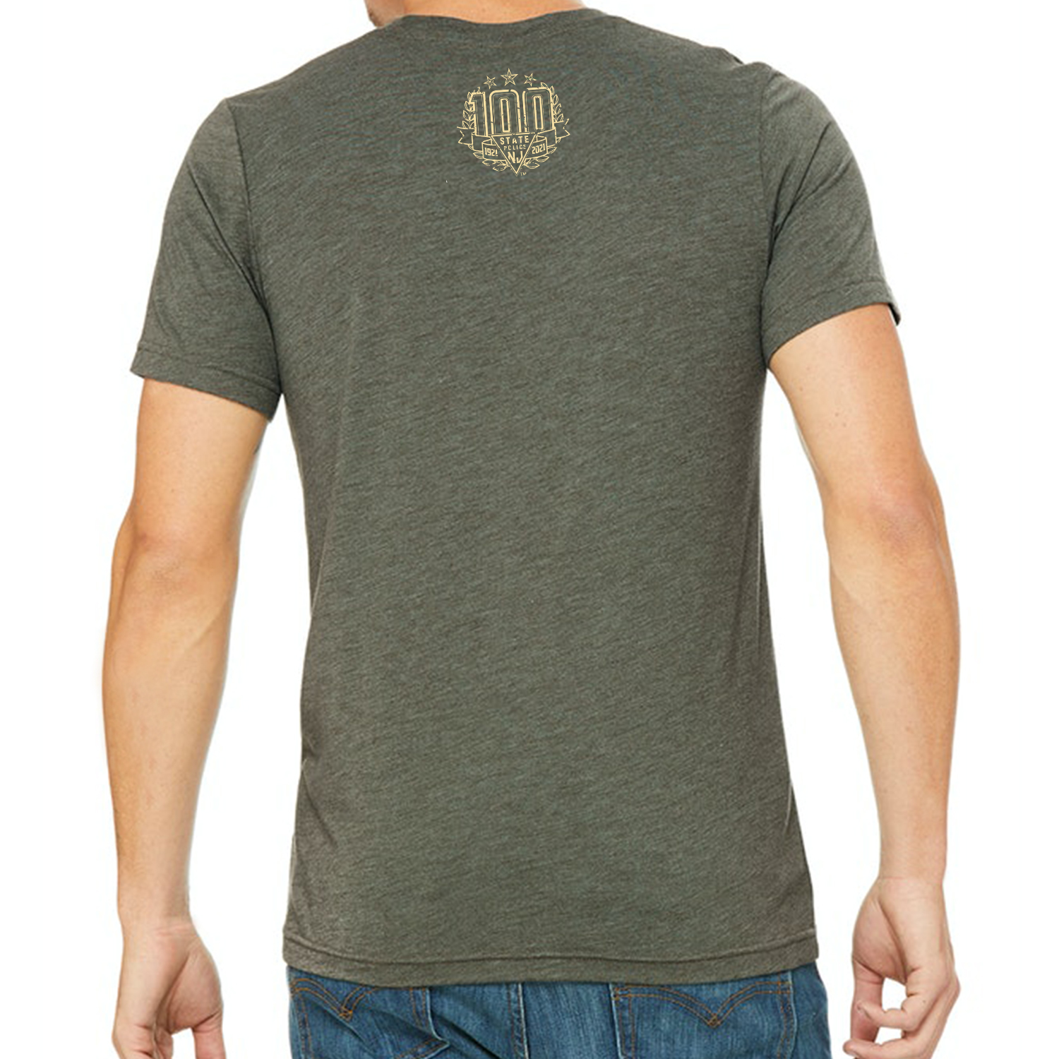 This heather olive green shirt displays one of the designs that were painted on the gas tanks of our Harley Davison patrol motor cycles throughout history. The back of the shirt displays the official 100th Anniversary logo.