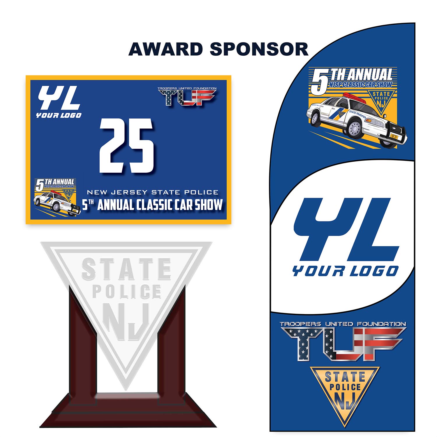 Award Sponsor: Your company’s logo will be printed on a large sponsorship flag and on our glass NJSP trophy award for a specific category. Your company’s logo will be also printed on the front of the Dash Plaque and back of event T-shirt.
