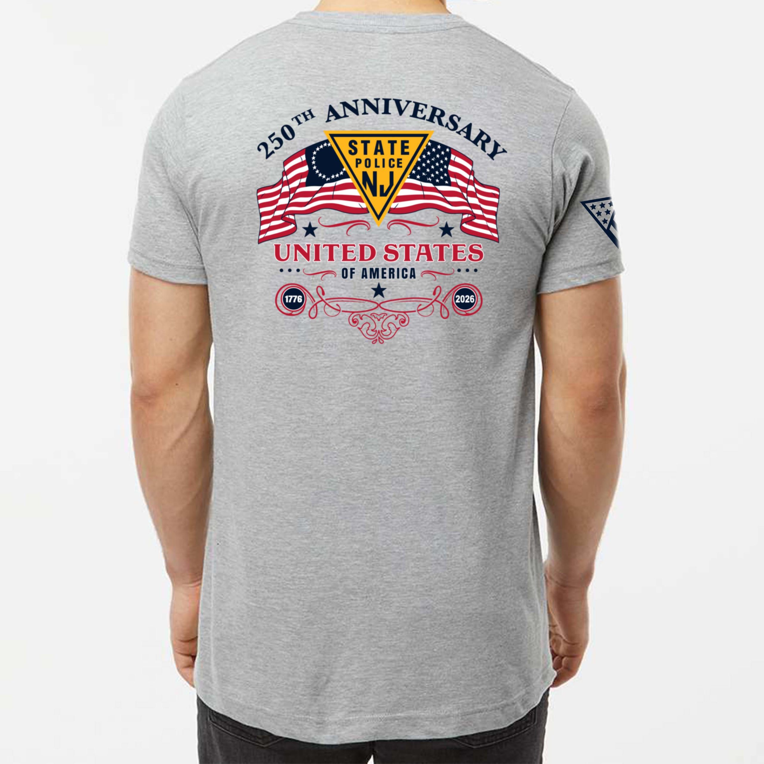 Honor the nation’s milestone moment with our Special Edition New Jersey State Police 250th Anniversary T-Shirt. This exclusive design pays tribute to America’s enduring spirit and the proud legacy of the NJSP.