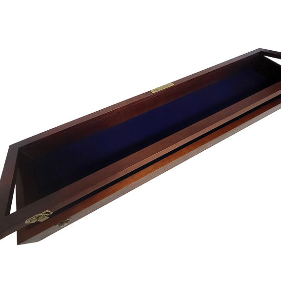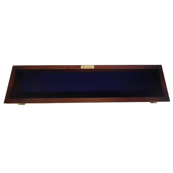 TUF is proud to release our custom 100th Anniversary Winchester display case. This display case is a cherry Stained Wood Display Case with glass front and Navy felt back. Each case comes with an engraved brass plate and rifle mounts that can be affixed to your case based on your preference.