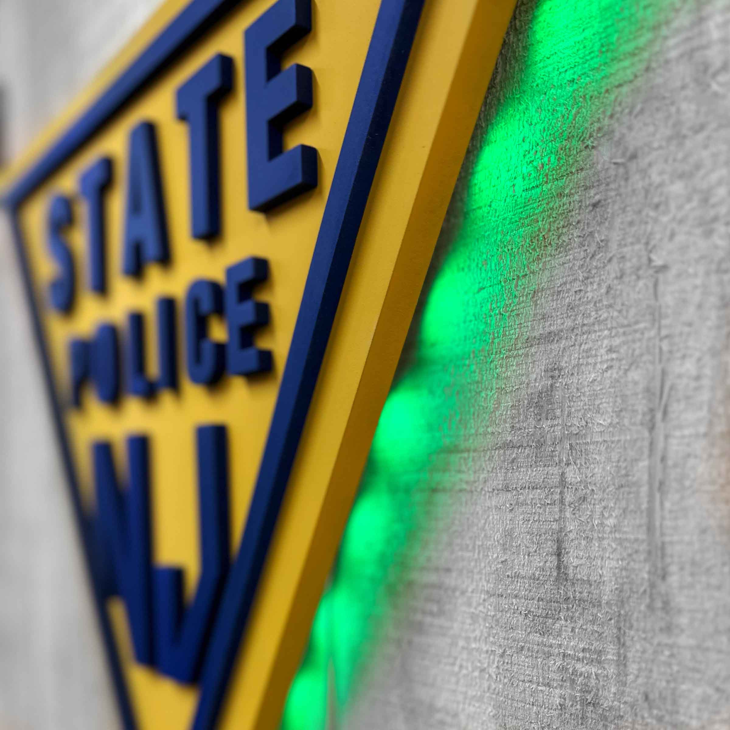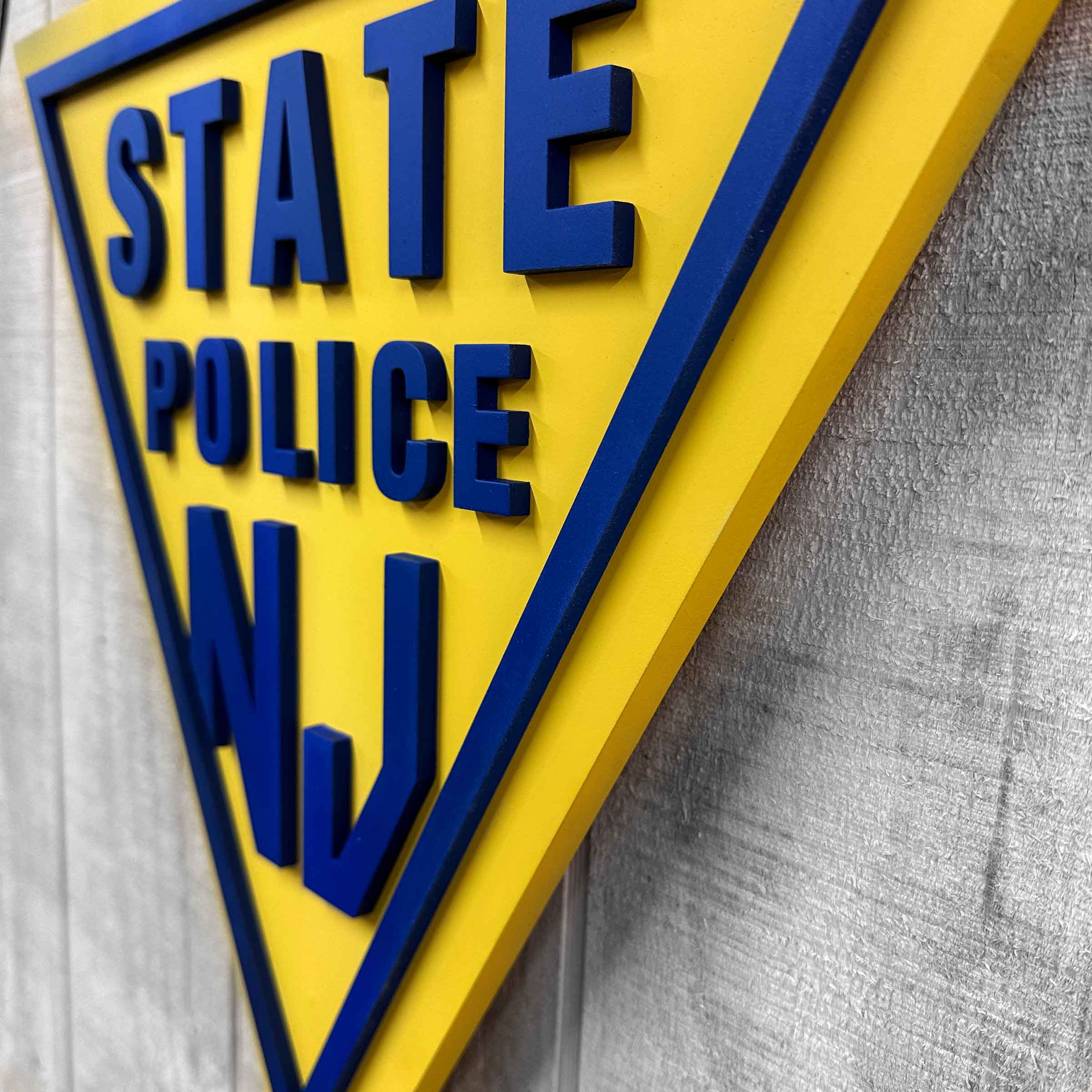 Each piece of artwork is hand built and painted in the USA! The 3D layered construction brings wood working artistry to a whole new level. This sign is an exclusive piece specially designed for the Troopers United Foundation by Upper Room Creations. These signs make a perfect gift for all occasions and will be a perfect addition to any home, office, man cave or anywhere you want to show off your NJSP pride.