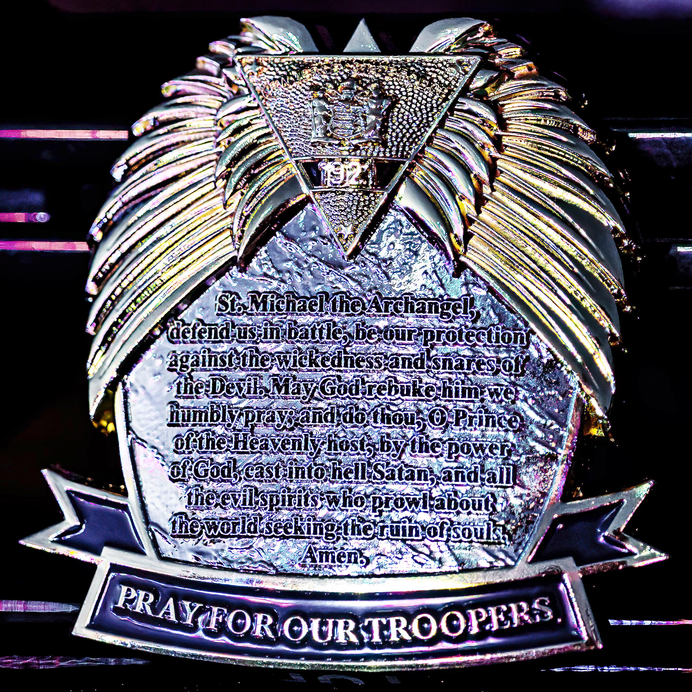 The Troopers United Foundation has established a relationship with St. Mary of Mt. Carmel Parish in Hammonton, NJ as they continue celebrating the lives of Fallen Police Officers during the Our Lady of Mt. Carmel Procession and hosting an annual Blue Mass honoring Police Officer’s sacrifices during the Feast of St. Michael. This coin features the statue that was handcrafted in Italy to honor Law Enforcement.