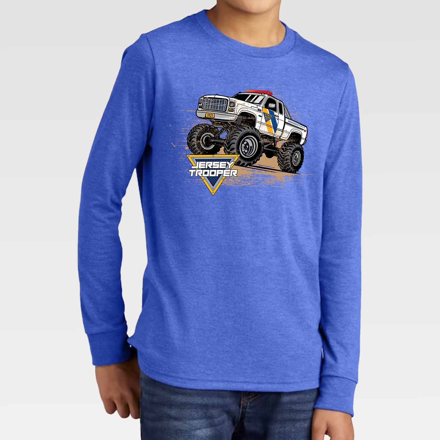 Introducing our New Jersey State Police Monster Truck Youth Long Sleeve Shirt! This eye-catching shirt features a bold monster truck design, perfect for young fans of Monster Jam and the NJSP. Made from soft, durable fabric, it ensures comfort while keeping kids warm during cooler days. With its vibrant colors and unique graphic, this shirt is not only stylish but also showcases pride in the New Jersey State Police.
