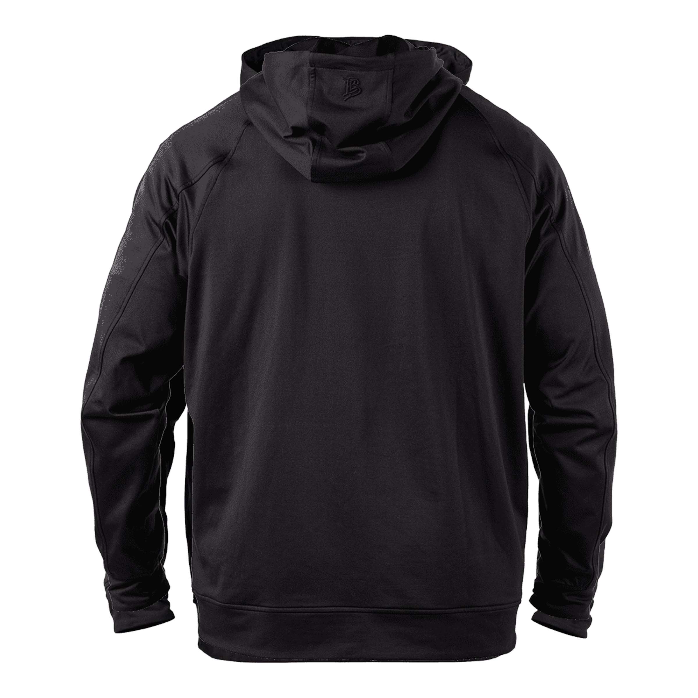 Mid-weight, breathable 4-way stretch, moisture wicking technical fleece with mesh contrast fabric.