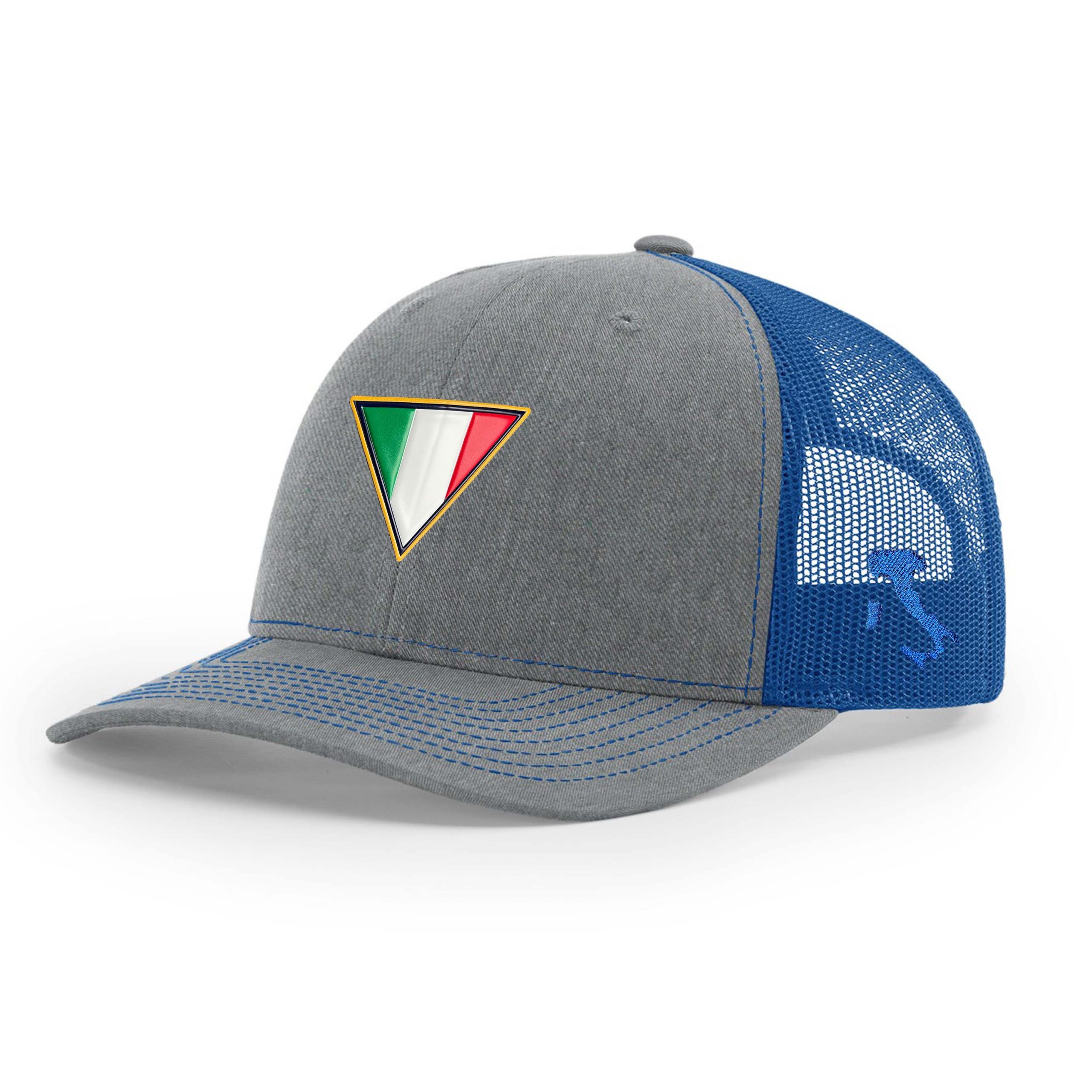 This NEW Heritage adjustable hat displays the Italian Flag in the Shape of a Triangle outlined with blue and gold stripes representing the New Jersey State Police. This logo is affixed to the hat by using professional Poly Press logo technology. The left side of the hat features the Country of Italy embroidered on the blue mesh.
